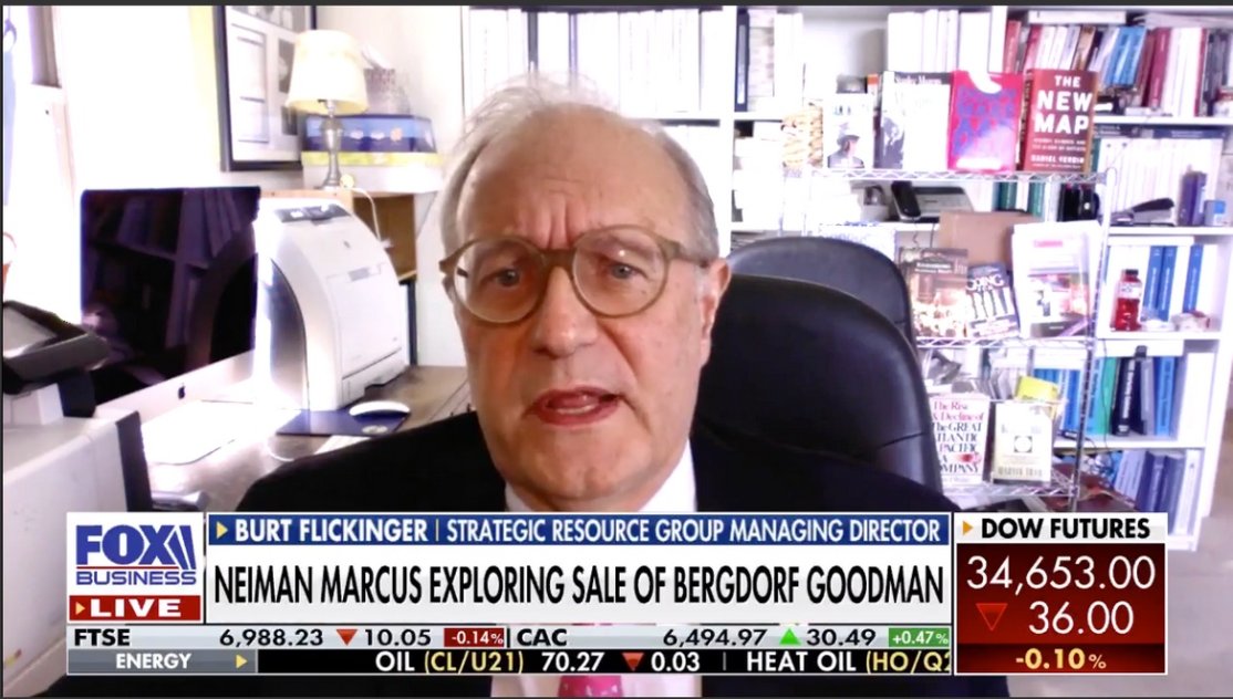 Strategic Resource GroupOn "Mornings with Maria," Burt P. Flickinger, III reported that Bergdorf Goodman may levitate from a coffin like Screamin' Jay Hawkins in a retail requiem for luxury retail if Neiman Marcus sells it to Selfridges or another top luxury retailer. He also analyzed the pandemic's long-term implications for luxury retail, both online and in-store, across the Fashion Deserts in the People's Republic of China, Continental Europe and other parts of the Americas, and offered his prognosis for the gaming/luxury dynamic.