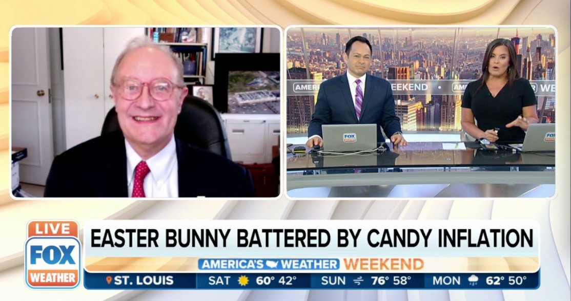 Strategic Resource GroupBurt P. Flickinger, III's latest appearance on FOXWEATHER, FOXWEATHER.COM & FOX BUSINESS with Amy Freeze and Craig Herrera featured a discussion of record-high prices for Easter that is candy-crushing consumers, with Cadbury eggs up by two-thirds and wicker baskets by 12.5% this holiday season, and sugar, milk, coffee & eggs up 20-50%. Overall, the annual cost of gas, groceries & home energy for a family of five is now $9K and on its way to $10K, up from $5K a year ago. Wicked storm systems are expected this week going into Good Friday & Easter Sunday that may curtail at-home Easter Egg Hunts as consumers can't afford to eat out, and also impair farmers, retailers & truckers. Also, because of inflation, many consumers won't be able to afford new dresses, suits, clothes or shoes for their children's First Communions & Christenings, with the cost of clothing high and going higher & people can't afford to get married & have children.