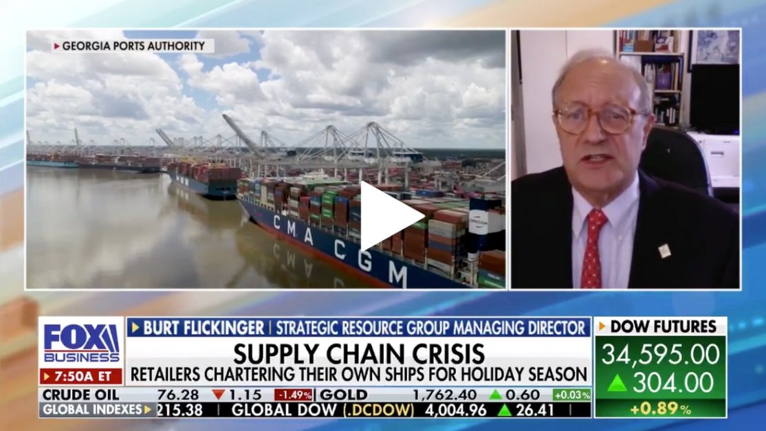 Strategic Resource GroupOn Burt P. Flickinger, III's weekly "Retail Roundup" on MORNINGS with MARIA, he discussed the most problematic holiday shopping season in 47 years, going from mediocre to commercially catastrophic with shipping and product shortages to record-breaking heating costs and a doubling of cotton costs since March 2020, driving up the price of T-shirts & jeans, which Levi Strauss CEO Chip Bergh says consumers are willing to pay. Also: Amazon is rolling out Black Friday deals in October in part because of the shipping crisis but also to promote its fashion and handmade lines, and replace trips to shopping centers in every product category.