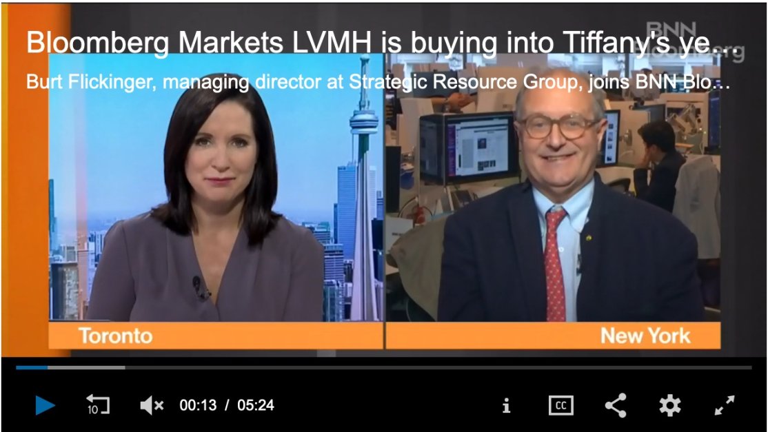 Strategic Resource GroupBurt P. Flickinger, III sat down with BNN Bloomberg's Amanda Lang about the implications of LVMH's bid to acquire Tiffany's and breathe new life into the luxury sector worldwide, especially in Asia where it could increase its business as much as 700%.